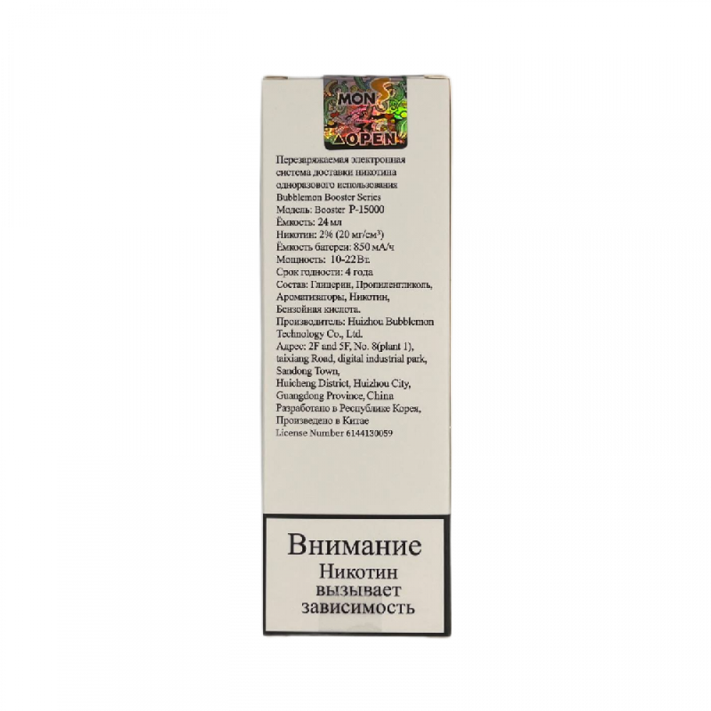 Технические характеристики Bubble Mon Booster P-15000 Киви Клубника