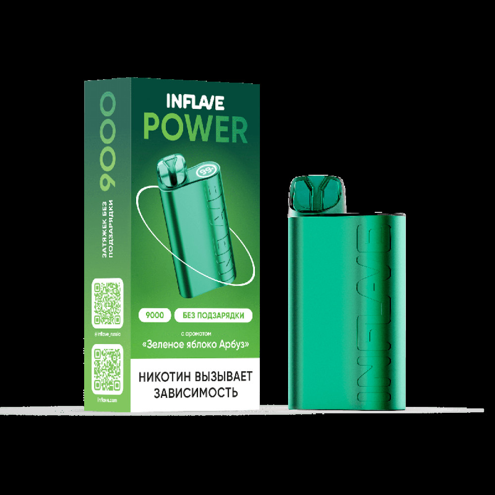 Электронная сигарета INFLAVE POWER 9000 затяжек Зеленое Яблоко Арбуз - купить в Дзержинске